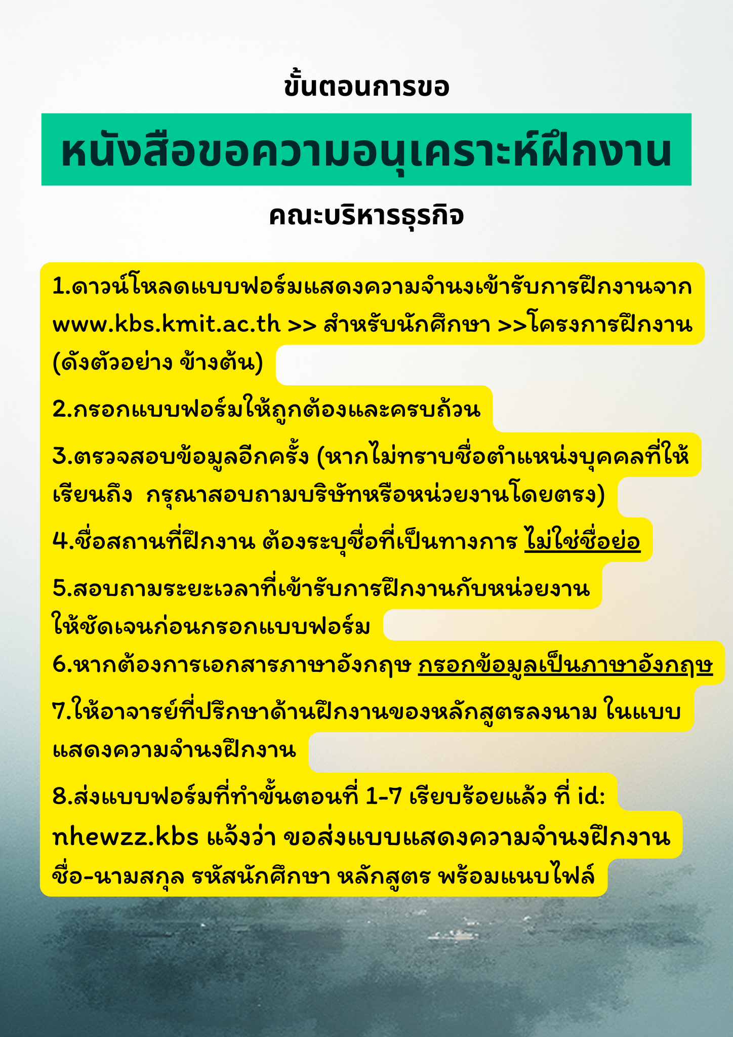 Internship Program document Internship Cover Letter Request Form (Word)Internship Cover Letter Request Form (PDF)KBS Internship Logbook FormKBS Internship Report FormKBS Internship Evaluation FormDaily Report KBS ENGINTERNSHIP REPORT TEMPLATES – ENGInternship Evaluation Form KBS