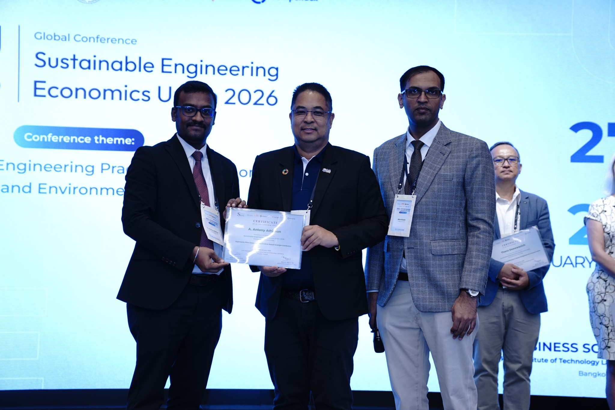 📝 ผ่านกันไปแล้วกับงานประชุมวิชาการนานาชาติ SEEU 2026: Global Conference Sustainable Engineering Economics Union 2026 เมื่อวันที่ 27-29 มกราคม 2569 ที่ผ่านมา โดยมี นักวิชาการ นักวิจัย นักศึกษา จากหลายประเทศ อาทิ ฮังการี สโลวาเกีย อินโดนีเซีย ร่วมขับเคลื่อนองค์ความรู้ด้านนวัตกรรมเศรษฐศาสตร์ วิศวกรรม และความยั่งยืน สู่การเติบโตทางเศรษฐกิจและการปรับตัวด้านสิ่งแวดล้อม