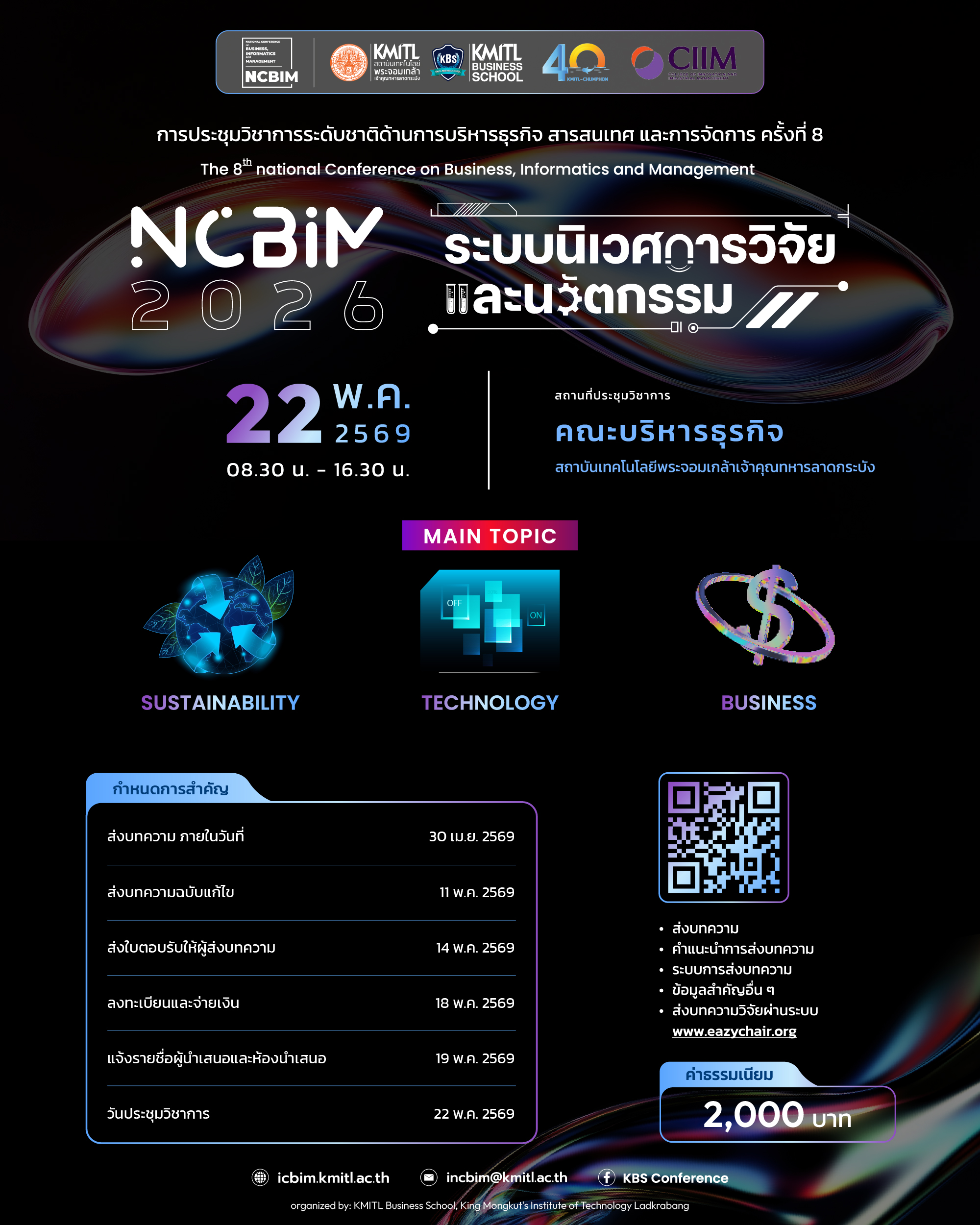 🟢 การประชุมวิชาการระดับชาติด้านการบริหารธุรกิจ สารสนเทศ และการจัดการ ครั้งที่ 8